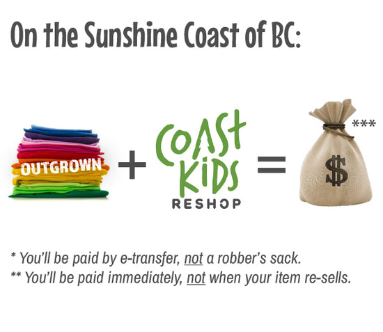 Coast Kids Reshop buys and sells quality preloved clothes, shoes & outerwear for kids, size 0-18 plus maternity, in Gibsons on the Sunshine Coast of BC, Canada.